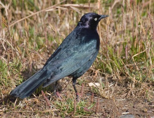 For comparison: Male Brewer's Blackbird--Note purplish head, pale eye, pointed bill